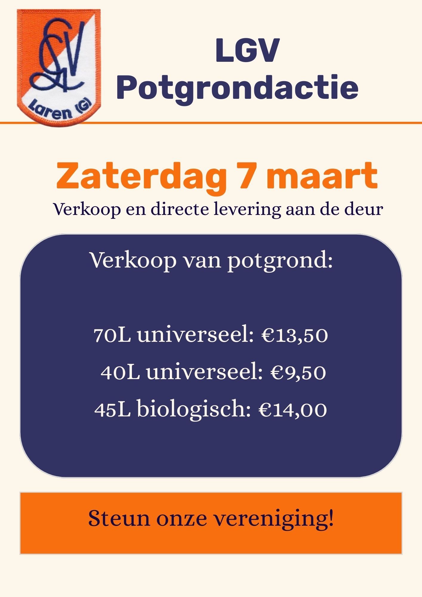 Op zaterdag 7 maart verkoopt de LGV potgrond voor de vereniging.